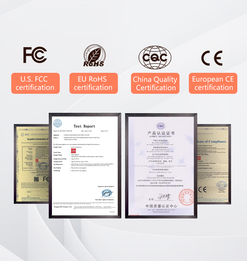 *Our transformer products have obtained a number of international and domestic certificates, including but not limited to CE certification, ROHS certification, FCC certification and so on. These certifications ensure that our products comply with international standards in terms of electrical safety, environmental protection and electromagnetic compatibility.